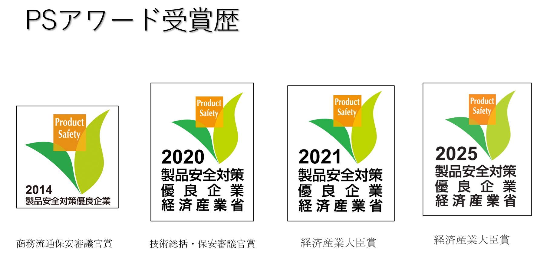 また、経済産業省主催製品安全対策優良企業表彰(PSアワード)では、過去4回の受賞することができました。このPSアワードが、会社が一丸となって「製品安全」に取り組むきっかけになったのです。